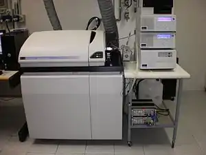 Collaborative arrangements with other basic and applied science departments have led to the joint operation of such facilities as the Sony Microscopy Laboratory featuring transmission and scanning electron microscopes and associated computer imaging facilities, the X-Ray Crystallography Facility, featuring a Rigaku AFC7R diffractometer, two powder diffractometers and associated computing equipment.[5] Designated as a Mass Spectrometry Center of Excellence to Study Diseases and Environmental Issues by Agilent Technologies, the Department of Chemistry & Biochemistry has a research facility equipped with chromatography and spectroscopy instrumentation. Some instruments housed in the facility include:[6]