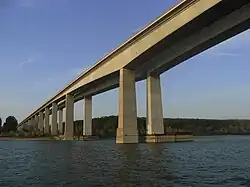 Beška Bridge (Serbian: Мост код Бешке, romanized: Most kod Beške) crosses the Danube river near Beška, Serbia on the A1 motorway, part of the European route E75. It consists of two identical prestressed concrete constructions, the first being completed in 1975 and the second in 2011. With 2,205 m total length, it is the longest bridge over the Danube.[2]