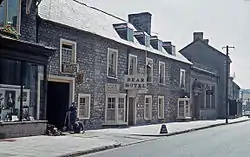 The inn is dated to the medieval period, around the 12th century. It was once probably a three-unit, lateral chimney, hall-house, later converted into a storeyed house. [2] It has undergone much alteration over the years, and little remains of the original except the fireplaces, one of which is in poor condition.[2] The fireplace lintels of carved stone are notable. The hall fireplace has two shields, one bearing a reversed lion rampant and the other a trefoil.[2] The hall contains heavy ceiling beams, dated to the late 16th century. The plastered ceiling in the inner room is dated to the early 18th century. On the first floor there are plain-chamfered ceiling beams and roof trusses, although this is obscured.[2] In the 18th century the first floor was converted into an assembly room, and subsequently the High Sheriff for the county often met with noblemen of the county at the Bear Inn.[2][3] The Glamorganshire Agricultural Society was established in 1772 at the inn. In this era, the inn served as a stopping point for those in need of changing horses, while other similar establishments, such as the Cowbridge Arms, Royal Oak, and Spread Eagle did not offer such a service.[4] The northern side of the house once had wing attached to it during the medieval period but this no longer exists.[2] In the early 19th century, Christopher Bradley was succeeded by Michael Glover as inn host.[5] In the early 20th century, the county Court occasionally sat at the Bear Inn when it had such needs in Cowbridge.[6] Nearby is the Cowbridge Grammar School.[7]