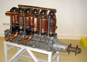 The engine featured cast iron cylinders and mild steel concave pistons. Produced between March 1916 and December 1918, the design powered many World War I aircraft types. It was noted that the engine was not as reliable as its smaller capacity predecessor.[2]