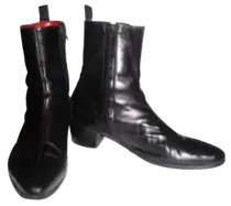 A Beatle boot or Baba boot [1] is a style of boot that has been worn since the late 1950s but made popular by the English rock group the Beatles in the 1960s. The boots are a variant of the Chelsea boot: they are tight-fitting, Cuban-heeled, ankle-high boots with a sharp pointed toe. The style can feature either elastic or zipped sides.[2]