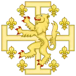 Beaumont Herald of Arms Extraordinary was an officer of arms extraordinary in England. Beaumont was a royal herald, but was not a member of the College of Arms. The office was created in 1982 and named after the barony of Beaumont, one of the subsidiary titles of the Earl Marshal, the Duke of Norfolk. The badge of office combines the cross potent of the Kings of Jerusalem from whom the Beaumonts are descended, with the lion and fleur-de-lis charges from the family coat of arms. It is blazoned In front of a Cross Potent a Lion rampant within eight Fleurs-de-lis in orle Or.[1]