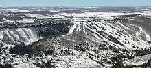It is situated on a steep sided section of the Niagara Escarpment adjacent to the Bruce Trail. It features some of the steepest runs and most diverse terrain in the region. The Club has 28 trails, five snowparks including a championship snowboard/ski cross course,[3][4] national level mogul and slopestyle runs,[5][6][7] glade skiing and a steep, groomed ski bowl. Its Playground snow park is one of the longest full featured snow park runs in Ontario.[8] The Club has six lifts, two lodges, and a ski and snowboard shop with rentals.