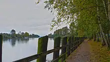 The Bedford Channel is a small side channel of the Fraser River near the north end of the Township of Langley, on the south side of McMillan Island.[1] The pair of islands—Brae Island and McMillan Island that protect the riverfront of Fort Langley, British Columbia are reached by the bridge that crosses the Bedford Channel on the way to the now-closed Albion Ferry terminal and the main reserve community of the Kwantlen First Nation on McMillan Island. The Bedford name has been used in the name of a new housing development in the town of Fort Langley.