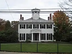 The Beebe Estate is located a short way west of downtown Melrose, on the north side of West Foster Street, just west of the railroad tracks and east of the Beebe School. The two story building is a sophisticated expression of Greek Revival architecture, with corner pilasters, and a front entry portico with fluted Doric columns and a gabled pediment. A railing surrounds the hip roof, which has a cupola at its center. The design of the cupola is based on the Choragic Monument of Lysicrates at the Acropolis of Athens.[2]
