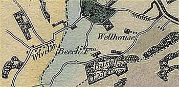One of the first examples of the village name Beech is in Greenwood's map of Hampshire dated 1826, which shows a "Beech Farm" between "Wivelet" (the current Wivelrod) to the west, and "Wellhouse" to the east, now Wellhouse lane in the current Civil Parish of Beech.