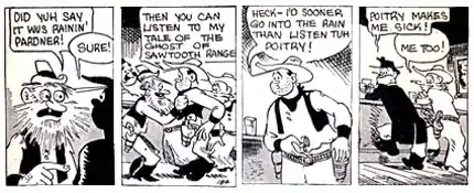 The wild Western strip ran from December 28, 1937, to December 28, 1945, in the Daily Mirror newspaper.[1] The sheriff character was based on McClelland's father, a farmer with a wooden leg.[2]