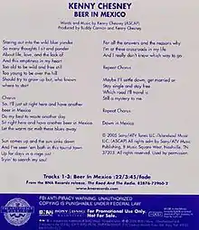 - ↑ Coyne, Kevin John (2007-01-15). "Kenny Chesney - "Beer in Mexico"". Country Universe. Retrieved 2010-06-17.