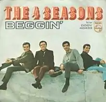 "Beggin'" is a song composed by Bob Gaudio and Peggy Farina and first released as a single by American band the Four Seasons in 1967. Initially charting at number 16 in the US Billboard Chart, the song became popular in the Northern soul scene in the United Kingdom in the 1970s. It has been covered multiple times, with versions by Norwegian hip-hop duo Madcon and Italian rock band Måneskin topping music charts in Europe and beyond. The Four Seasons' version was remixed in 2007 by French DJ Pilooski and re-released as a single, reaching number 32 in the UK Singles Chart, commercially outperforming the band's original release in the UK.