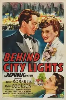 Behind City Lights is a 1945 American crime film directed by John English and written by Richard Weil and Gertrude Walker. The film stars Lynne Roberts, Peter Cookson, Jerome Cowan, Esther Dale, William Terry and Victor Kilian.[1][2][3] The film was released on September 10, 1945, by Republic Pictures.