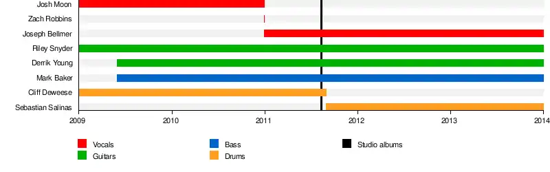 | Past members | Josh Moon Riley Snyder Derrik Young Mark Baker Sebastian Salinas Zach Robbins Cliff Deweese |