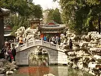 In Beihai Park, one could find Taihu rocks shipped from Henan province and a variety of art collections ranging from jade jars from the Yuan dynasty to a collection of 495 steles bearing inscriptions by trees of hundreds of years old.[1]