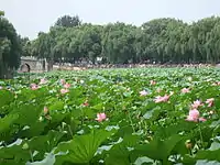 During the reign of Kublai Khan in the Yuan dynasty, the Qionghua island was redesigned by various architects and officials such as Liu Bingzhong, Guo Shoujing and Amir al-Din.[4][5] Taiye Lake was enclosed in the Imperial City of Yuan's new capital Dadu