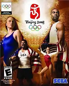 ![]() Amanda Beard, Tyson Gay, Nastia Liukin and Reese Hoffa appear on the U.S. cover art for the game.[1] | |