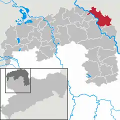 Beilrode is a municipality in the district Nordsachsen, in Saxony, Germany. It absorbed the former municipality Großtreben-Zwethau in January 2011. It consists of the Ortsteile (divisions) Beilrode, Dautzschen, Döbrichau, Döhlen, Eulenau, Großtreben, Kreischau, Last, Neubleesern, Rosenfeld and Zwethau.[3]