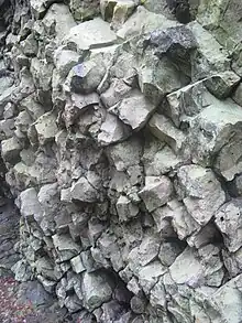 Unlike most of the Spessart, which consists mainly of Buntsandstein, the Beilstein is an outcropping of basalt. The upper slopes of the hill are wooded, but at the top basalt rocks are exposed. Around 10-20 million years ago, volcanic activity caused this to break through the local Buntsandstein, which is roughly 200 million years older. The Beilstein features characteristic basalt columns and the largest basalt cave in the Main-Kinzig district.[1]