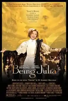 Being Julia is a 2004 comedy-drama film directed by István Szabó and starring Annette Bening and Jeremy Irons. The screenplay by Ronald Harwood is based on the novel Theatre (1937) by W. Somerset Maugham. The original film score was composed by Mychael Danna.