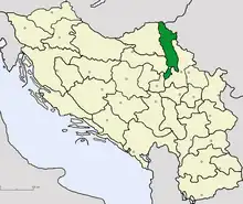 The Belgrade Oblast included small northern part of Šumadija near Belgrade, western parts of Banat and eastern parts of Bačka. It shared borders with the Bačka Oblast and Syrmia Oblast in the west, the Valjevo Oblast in the south-west, the Podunavlje Oblast in the south-east, Romania in the north-east and Hungary in the north.
