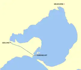 The Bellarine Highway[2] is a main arterial highway that runs east from Geelong in Victoria along the Bellarine Peninsula to Queenscliff. The highway also provides the main route to Barwon Heads and Ocean Grove, localities along the southern coast of the peninsula.