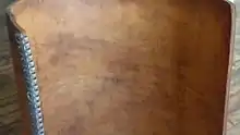 Flat belts were traditionally made of leather or fabric. Early flourmills in Ukraine had leather belt drives. After World War I, there was such a shortage of shoe leather that people cut up the belt drives and made shoes. Selling shoes was more profitable than selling flour, for a time anyway. Flour milling soon came to a standstill and bread prices rose, contributing to famine conditions.[5] Leather drive belts were put to another use during the African Rhodesian War (1965-1979) To protect riders of cars and busses from land mines, layers of leather belt drives were placed on the floors of vehicles in danger zones. Today most belt drives are made of rubber or synthetic polymers. Grip of leather belts is often better if they are assembled with the hair side (outer side) of the leather against the pulley, although some belts are instead given a half-twist before joining the ends (forming a Möbius strip), so that wear can be evenly distributed on both sides of the belt. Belts ends are joined by lacing the ends together with leather thonging (the oldest of the methods),[6][7] steel comb fasteners and/or lacing,[8] or by gluing or welding (in the case of polyurethane or polyester). Flat belts were traditionally jointed, and still usually are, but they can also be made with endless construction.