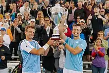 Ben Johns, alongside his brother, Collin Johns, after winning the Men's Doubles title at the PPA Carvana Arizona Grand Slam Presented by Hyundai in February 2023