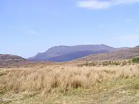 Ben Mor Coigach (Scottish Gaelic: Beinn Mhòr na Còigich) is the highest point along a ridge rising steeply from Loch Broom, in the far northwest of Scotland. It rises above the Coigach peninsula in the county of Ross and Cromarty, 10 kilometres northwest of Ullapool, reaching a height of 743 metres (2,438 ft). Its coastal position, combined with its high topographic prominence to height ratio, provides a spectacular panorama, sweeping from Ullapool across to the Summer Isles and north over the Coigach to the distinctive peaks of the Assynt, as well as more distant views to Skye and the Outer Hebrides, conditions permitting. The area is a Scottish Wildlife Trust nature reserve.