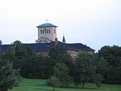 The original monastery was founded in 1874 by a group of five sisters led by Mary Anselma Felber, who came from the young monastery of Maria-Rickenbach (founded 1857) in Switzerland. Arriving in Clyde, Missouri, they founded the Benedictine Convent of Perpetual Adoration. This remains the motherhouse and largest community of the congregation.[1] The decision to come was sparked by the departure of a group of monks from the nearby Engelberg Abbey, at a time when monastic communities were threatened by political changes taking place throughout Europe. The monks went on to found Conception Abbey in nearby Conception, Missouri, and began to minister to German and Irish immigrants of the region.[2]