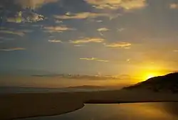The four beaches at the river mouth, south of Mallacoota, form a naturally occurring dam resulting in a 1 kilometre (0.62 mi) long, narrow, winding lake behind the southeast sea-facing beaches.[3][4][5][6]
