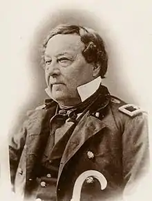 Bonneville retired from active service in 1861 but was soon recalled to duty during the Civil War. From 1861 to 1863 Bonneville served as superintendent of recruiting in Missouri, and from 1862 to 1865 served as commander of Benton Barracks in St. Louis.[6] At the end of the war he was breveted as a brigadier general in honor of his long and distinguished career.
