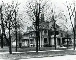 In 1889, Davis commissioned local architect Darius B. Moon to design a house for them. Moon's design was a fine Victorian Carpenter Gothic, with multiple porches and balconies. A Chinese pagoda was placed on the roof, with a wide veranda and a porte-cochère below. Davis's wife Eva died in 1890, but Davis lived in the house until his death in 1934.[2] Davis's last surviving daughter, Mrs. Edith Eva Davis, lived in the house for a time. After her death, the house was vacant and rapidly deteriorated. In 1971, demolition began, but were temporarily halted as plans were being made to rehabilitate the house by the Greater Lansing Historical Society.[3] However, the house soon burned and was demolished.[4]