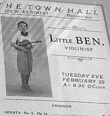 Benjamin Steinberg was born in Baltimore, Maryland, on March 15, 1915, to Moses and Annie Steinberg. His parents were from Odessa (then part of Czarist Russia, now Ukraine) and had fled to the United States following the anti-Jewish Odessa pogrom of 1905 and the failed Russian Revolution that year. Benjamin first performed violin on the concert stage as an 11-year old in 1927.[1]