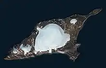 Bennett Island has the largest permanent ice cover within the De Long Islands. In 1987, the permanent ice cap of this island consisted of four separate glaciers that had a total area of 65.87 square kilometres (25.43 sq mi). All of these glaciers were perched on high, basaltic plateaus bounded by steep scarp-like slopes.[9]