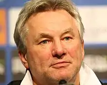 Möhlmann's managing career started at Hamburger SV in 1992. From 1995 until 1997 Möhlmann was manager of Eintracht Braunschweig, then Möhlmann moved to Greuther Fürth, staying at that club until 2000. From 2000 until 2004, Möhlmann was manager of Arminia Bielefeld, winning promotion to 1. Bundesliga in 2002, but the team was immediately relegated the year after. Möhlmann was left in February 2004 and returned to Greuther Fürth.[3] Möhlmann became manager of Eintracht Braunschweig in July 2007.[4] After a string of unsatisfying performances by the team, Möhlmann stepped down as manager in May 2008.[4] In July 2008, Möhlmann became for the third time the manager of Greuther Fürth, but he cancelled his contract on 20 December 2009.[5] On 7 November 2010, Möhlmann was appointed manager of FC Ingolstadt.[6] After almost exactly one year with Ingolstadt, Möhlmann was sacked as manager on 9 November 2011, after losing four of the five previous matches.[7] Möhlmann became manager of FSV Frankfurt on 21 December 2011.[8] He was sacked on 18 May 2015.[9] His final match was a 3–1 loss to Union Berlin.[10] On 6 October he was appointed as the head coach of 1860 Munich.[11] He was sacked on 19 April 2016.[12]