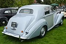 In 1944 Rolls-Royce executive W. A. Robotham saw that there would be limited postwar demand for a Rolls-Royce or Bentley rolling chassis with a body from a specialist coachbuilder, and negotiated with the Pressed Steel Company a contract for a general-purpose body to carry four people in comfort on their postwar chassis behind a Rolls-Royce or Bentley radiator. Though he stretched the demand to 2000 per year, Pressed Steel were "nonplussed" by the small demand.[7] Chassis continued to be supplied to independent coachbuilders, which produced four-door saloon, two-door saloon and drophead coupe models.[2] Out of the coachbuilt cars the most sought after now are the 241 cars built by H.J. Mulliner. A single 1950 Standard Steel bodied MkVI chassis B39HP registration LLP 769 was supplied new converted internally by Mulliner into a six-seater limousine supplied to L.S. Lambourne Esq. The ex factory price was £2595 plus £140 for the outsourced conversion by Mulliner of the front seat to accommodate the wind up glass division in the custom bench seat.[8]