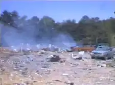 Authorities were unable to determine the exact cause of the explosion, but concluded that it probably occurred as a result of explosives being mixed. The charred remains of an electric drill with a paint-stirring attachment were found, and the prevailing theory of the cause was that a spark from the drill's motor reached the mixture.[1] Investigators concluded that other possible causes could have been sparking from an electrical wire, light fixture, or other appliance found at the site; and the scraping of boots on the floor.[14] A cigarette lighter and three packs of cigarettes were also found at the site, which investigators determined could have caused the ignition of highly explosive vapors that were byproducts of the manufacturing process.[2] ATF agents estimated that approximately 300 pounds (140 kg) of explosives were detonated in the blast.[15] TEMA later identified the dead as Faye Trentham (38), daughter Tanya Trentham (19), Doris Burns Longmire (29), David Nelce Webb (22, brother of Dan Lee Webb), Sybil Duggan (34), William Lee Burns (38), Beatrice Webb (51, mother of Dan Lee Webb), Dixie Freeman (21), David Parks (38) and his wife Judy (36), and Albert Kenneth Johnson (53, uncle of Dan Lee Webb).[14][16]