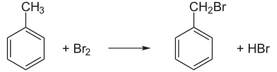 Benzyl bromide can be synthesized by the bromination of toluene under conditions suitable for a free radical halogenation: