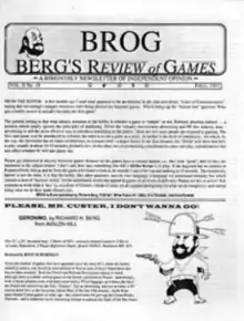 Berg's Review of Games (a.k.a. BROG) was a publication started by game designer Richard Berg. The magazine, which featured reviews of video wargames and board wargames, debuted in 1991.