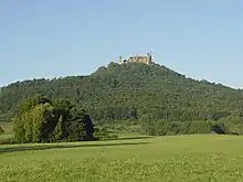 Hohenzollern is a mountain, 855 m (2,805 ft), of Baden-Württemberg, Germany. It is located in Zollernalbkreis. Hohenzollern Castle is located on its top. The mountain is an outlier, about 1 km (0.62 mi) north of the Swabian Jura.