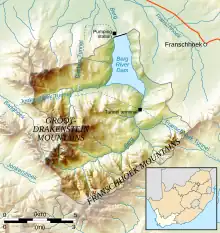 The Berg River Dam is a 68-metre (223 ft) high dam on the Berg River in South Africa. It is the centerpiece of the Berg Water Project (BWP) which is designed to capture the winter rainfall and store it for supply to Cape Town during the dry summer months. The project in turn forms an important part of the Western Cape Water Supply System (WCWSS), an intricate system of dams and bulk water infrastructure that provides water to more than 3 million people. At the inauguration of the dam in 2009, then President of South Africa Kgalema Motlanthe called the project "a good example of how public infrastructure projects can be used to contribute meaningfully to poverty eradication and to foster social empowerment of the people."[1] The Berg River Dam was the first dam in South Africa to be designed and constructed, and is due to be operated, in accordance with the guidelines of the World Commission on Dams.[2] It has been completed on time and within budget.[3] The Berg River basin and the adjacent metropolitan area of Cape Town are of particular importance to the Western Cape region because, although the basin generates only about 3% of the country's water resources, it is home to about 8% of South Africa's population, and produces about 12% of GDP.[4]