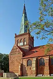 - The former abbey church, St. Mary's, began in 1168 as a palace church for the Rügen prince, Jaromar I, and was completed before 1193, apart from the westwork. The triple-aisled basilica church is the oldest surviving brick building in Mecklenburg-Western Pomerania. The gravestone recessed into the outer wall of St. Mary's Church is believed to be that of the Prince. Of note is the Roman mural, the only example in northern Germany of the complete painting of a church. In the 14th century it was expanded into a hall church.