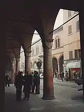 The portico of the palace remained open for a long time, given the successive undercurves made in ancient times to stabilize the building, but was later closed in an unspecified time to create spaces for shops.[2]