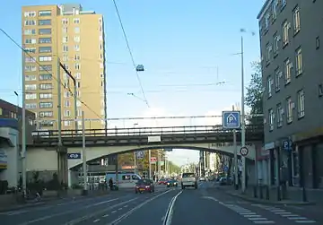 In the street lies the Rotterdam Noord railway station and the closed Bergweg railway station.