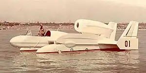 The Be-1 featured two floats with very low aspect ratio wing sections between them and small normal wing panels extending outside the floats. Surface-piercing hydrofoils were mounted on the underside of the floats. The aircraft was powered by a single Tumansky RU-19 turbojet, mounted above the wing. The Be-1 was also equipped with landing gear. The aircraft was operated between 1961 and 1964. The first flight from water was made in 1964.[1][2]