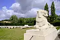 The cemetery extension was significantly enlarged in 1930 when it became clear that Rosenberg Chateau Military Cemetery and Rosenberg Chateau Military Cemetery Extension, located approximately one kilometre away, could not be acquired in perpetuity and the graves were moved to the Berks Cemetery Extension.[2] The current appearance of the cemetery was designed by Harold Chalton Bradshaw, who also designed the Cambrai Memorial in France.[3]