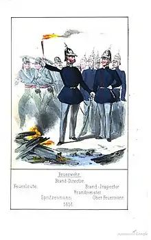 - ↑ Wolfgang Hornung-Arnegg: Feuerwehrgeschichte. Kohlhammer, 4. Auflage. 1995, ISBN 3-17-013203-2, S. 103.