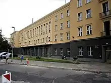 After the Second World War, six of the 38 professional fire stations were lost. Of the 51 volunteer fire stations, three were totally destroyed while twelve were only partially.[12] On November 21, 1948, the Berlin Fire Defence was divided into two separate authorities in East and West Berlin.[13] The first post-war fire stations were built on both sides during the 1950s. Technology and training in East and West developed separately. In 1952 the East Berlin Fire Brigade was incorporated into the Volkspolizei, abbreviated VoPo, (lit. 'German People's Police') as "Organ F" and issued firearms and batons.[14] East Berlin also received a "west turntable ladder" to protect the massive buildings on Stalinallee, today known as Karl-Marx-Allee. The turntable ladder type DL 52 manufactured by Metz, with a rescue height of over 50 meters, had a car that could be used as an elevator.[15] In the days after the Berlin Wall was built in 1961, the West Berlin Fire Brigade had to keep using its jumping blankets because people jumped from buildings on the demarcation line towards freedom in West Berlin. In 1969, the West Berlin Rescue Service was incorporated into the fire brigade. The Berliner Rettungsdienst was the ambulance service of Berlin. Since then, the West Berlin Fire Brigade has also been responsible for emergency medical services. In East Berlin, rescue and emergency medical services were carried out by the rescue office independently of the fire brigade until reunification. Since the early 1980s, the West Berlin fire brigade has repeatedly been involved in May riots in Berlin-Kreuzberg. A fire truck from the Berlin-Kreuzberg fire station was completely destroyed on the night of May 1, 1987.[16]