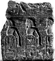 The Berlin pedestal relief is part of the base of a granite pedestal of an unprovenanced Ancient Egyptian statue containing an inscription describing Egypt's war victories. According to the German archaeologist Manfred Görg, the inscription on the pedestal may have originally contained one of the oldest known references to Israel, equal to or older than the inscription in the Merneptah Stele by two centuries. The artifact is kept in the Egyptian Museum of Berlin (ÄM 21687).[1]