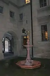 A staircase tower and gallery wing were added on the east side in 1664–66 by Abraham and David Edelstein.[6] A plan in 1788 to replace the medieval building by a grand new building designed by the Parisian architect Jacques-Denis Antoine was eventually cancelled due to cost.[5] Instead the building was partially renovated several times during the 18th and 19th centuries. The building was totally renovated in 1865–68 by Friedrich Salvisberg, repairing and modernizing it. The entire facade was redone in the Neo Gothic style, with a much more ornate grand staircase. In 1940–42 the building was totally renovated again under Martin Risch. The archives were moved to their current home on Falkenplatz. Many of the Neo Gothic elements were removed and the exterior of the building was returned to its earlier appearance. The large hall in the ground floor was restored to the original design. The council rooms in the upper floor were rebuilt in a modern style.[6] Today the building remains in use by the cantonal and city governments, though several rooms including the Grand Council room are available for rent.