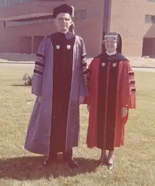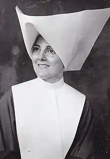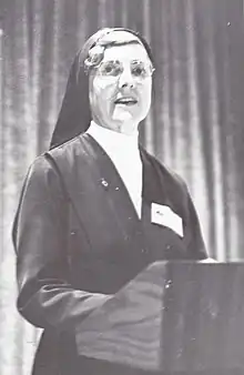 After earning her master's degree in 1947, she moved into leadership quickly, working as an assistant professor of graduate nursing students and directing undergraduates at Catholic University of America's Providence division at Providence Hospital (Washington, D.C.), a prominent medical facility founded by her religious congregation.[11] She was Director of Nursing at DePaul Hospital (now Bon Secours DePaul Medical Center) in Norfolk, Virginia, and in the mid-1950s director of surgical and medical nursing at the Catherine Labouré School of Nursing at Labouré College in Boston, Massachusetts, then run by the Sisters of Charity of St. Vincent de Paul, but now independent.[12] She was part of the team overseeing the amalgamation of several programs into what became the Carney Hospital in Dorchester, Massachusetts.[13] Then she went on to serve on the faculty at St. Joseph's Hospital School of Nursing in Emmitsburg, Maryland from 1955 to 1963, before going to doctoral studies in New York. She also served on the Board of Examiners of Nurses. While she was a doctoral candidate, she was also Administrative Chair of the Department of Nursing Education at St. John's.[14] On August 1, 1968, after completing her doctorate, she became Dean of the Niagara University College of Nursing, a post she held for seven years, until 1975.[15][16] In that role she also did individual and group psychological counseling.[17] In 1972 she was elected President of the American Association of Colleges of Nursing.[18] That same year she raised 1.2 million for a building for the nursing school, and she worked on its design, which the College and University Conference later cited for excellence.[19] She received the President's Medal from Niagara university in 1975, and resigned that same year to go to Rhinebeck, New York, to spend one year leading a child guidance clinic.