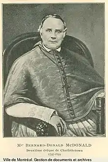 Bernard Donald Macdonald (December 25, 1797 – December 30, 1859) was the second bishop of the Roman Catholic Diocese of Charlottetown, succeeding Bishop Bernard Angus MacEachern.